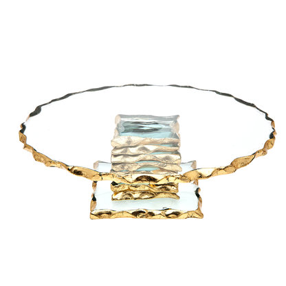 This decorative cake stand features a durable, non-lead crystal surface & a luxe gold edge particularly suited for the festive season.